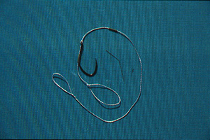| Bei einem normalen Line Aligner entsteht das Drehen des Hakens durch ein Stück Schrumpfschlauch, durch den das Vorfach nach Vorne herausgeführt wird. Bei dem Bent - Hook selbst führt der lange Hakenschenkel zur Rotation. Meine Version nutzt dazu einfach ein ca. 2 cm langes Drahtstück, das von 2 Schläuchen fixiert wird. Die Vorteile dieser Methode liegen auf der Hand. Zum einen kann diese Version mit jedem Haken benutzt werden. Zweitens ist es möglich, die Form des Line Aligners selbst zu bestimmen, da ja der Draht biegsam ist und damit eine gewisse Flexibilität zuläßt. Dadurch wird es für dem Benutzer einfacher, individuelle Formen zu kreieren und er kann schneller auf veränderte Bedingungen reagieren. Die Unauffälligkeit und Schonung des Fanges steht sicherlich dem Original in nichts nach, was ich durch längere Testserien nachweisen konnte. Bei beiden Versionen konnte man keinen Unterschied erkennen, was sowohl Anzahl der gefangenen Fische wie auch die sehr geringe Zahl der Aussteiger angeht. Der deutsche Line Aligner ist auch für ungeübte Bastler leicht herzustellen. Alles was man benötigt ist ein Stück Federdraht von ca. 2 cm Länge (je nach Hakengröße) und zwei Stücke Tube von 0,5 und 1 mm Durchmesser. Das 1 mm Tube wird auf den Haken geschoben (falls nicht ohnehin vorhanden), das 0,5mm Stück auf das Vorfach. Nun den Draht durch das Hakenöhr geschoben und in beide Schläuche gesteckt - Fertig. Die Form kann im Nachhinein bestimmt werden, so wie auch die ganze Montage nachträglich in fertige Vorfächer integriert werden kann. Ein großer Vorteil dieses Systems besteht auch nicht zuletzt darin, das man keinen Wasserdampf oder ähnliche Dinge braucht. Auch eine Beschädigung des Vorfaches durch Hitze wird vermieden. |