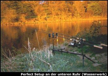 Stecke sowie einen Nebenbarm der Ruhr, der sogenannten "Saarner Aue" und den Mülheimer Hafen Tag und Nacht zu befischen. Richtigstellen müssen wir jedoch die Aussage verschiedener Angler, die behaupten, daß das Zelten an der unteren Ruhr grundsätzlich erlaubt ist. Dies ist nicht zutreffend. Zelte sind grundsätzlich verboten und nur Schirmüberwürfe werden offiziell geduldet, wenn sie am nächsten Morgen abgebaut werden. Soweit die "Gesetzeslage" an der unteren Ruhr, in der Regel hat man jedoch keine Probleme. |