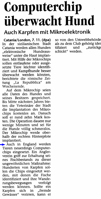 Quelle: Neue Osnabrücker Zeitung (NOZ), Ausgabe vom 07.11.1999 |